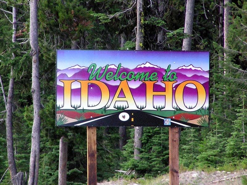 to Idaho highway sign, ranchland, Idaho Stock Photo Alamy
